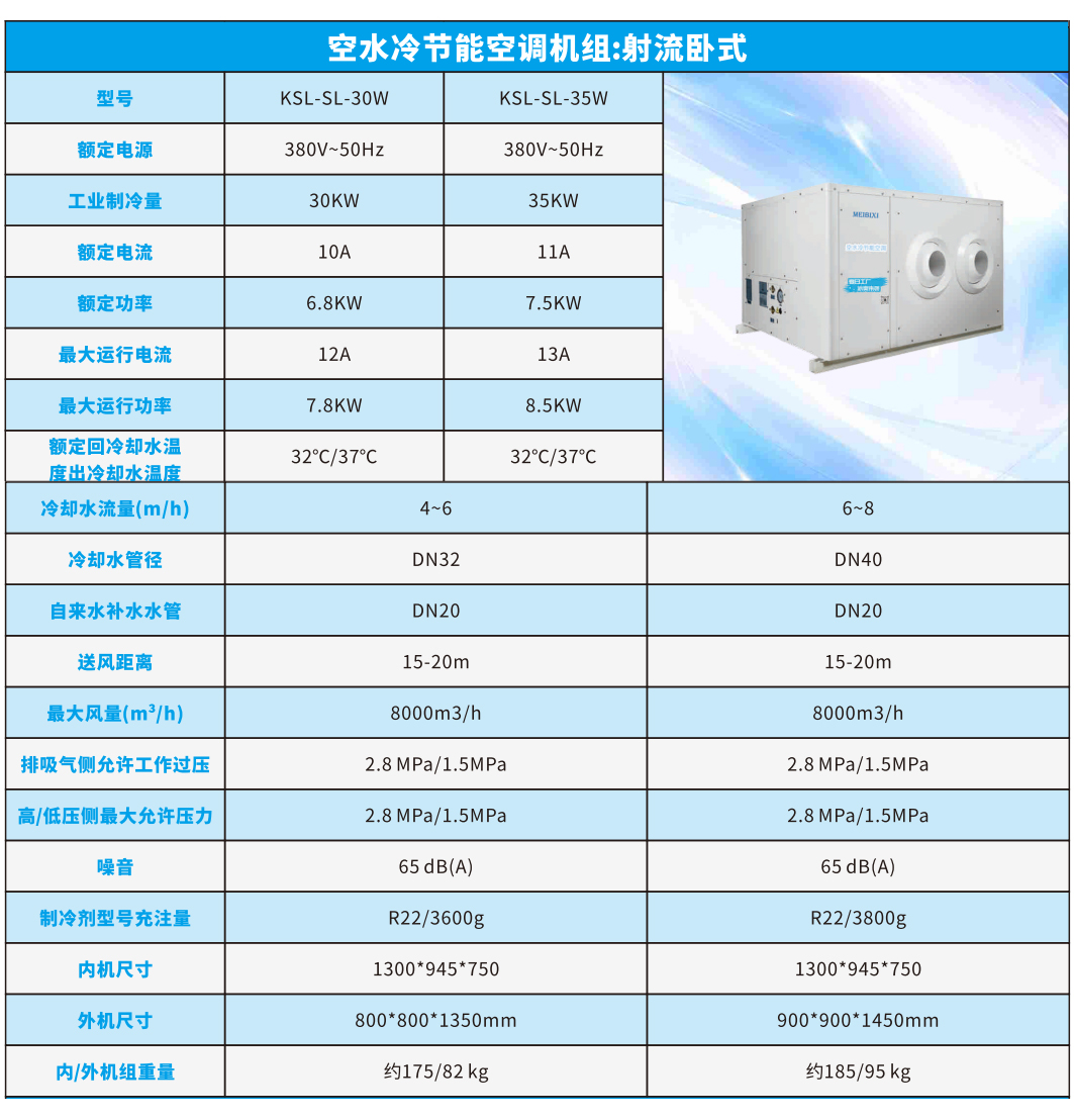 空水冷节能空调机组:射流卧式