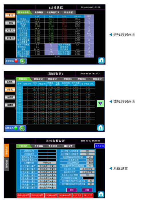 采用了菜单式操作界面,直观的状态模拟图,直观反映系统开关状态,极大地提高管理人员操作的准确性与便利性,独特的全中文引导式7寸人机触摸界面,简洁、直观、触摸方便,监控装置具有数字电位器校准功能,实现测量误差的实时校正。